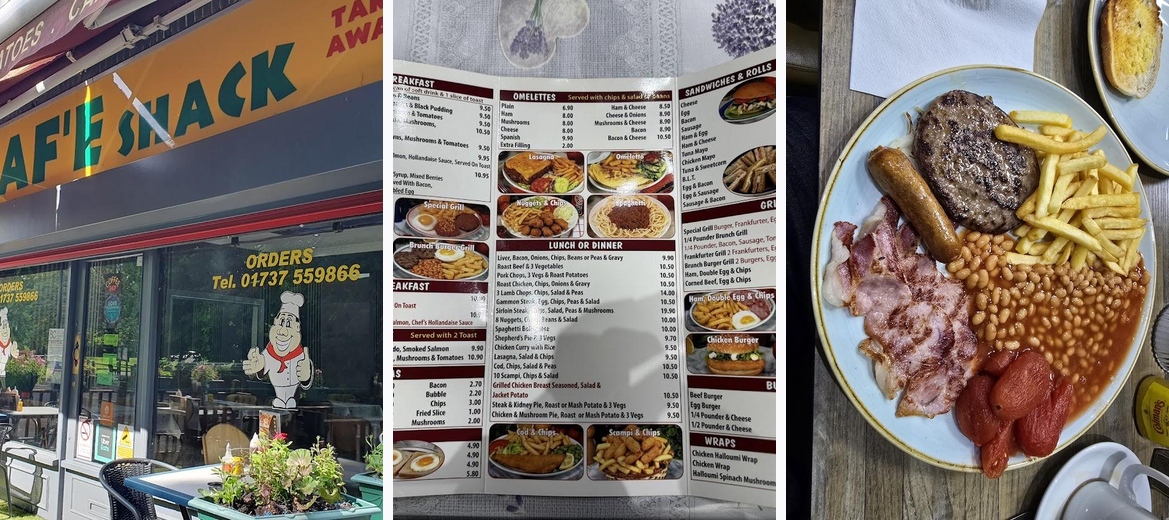Nice to have a cafe open early Service was excellent,food very filling a good atmosphere Will use this as 'my local' despite the 50 miles to get there when visiting Old Coulsdon